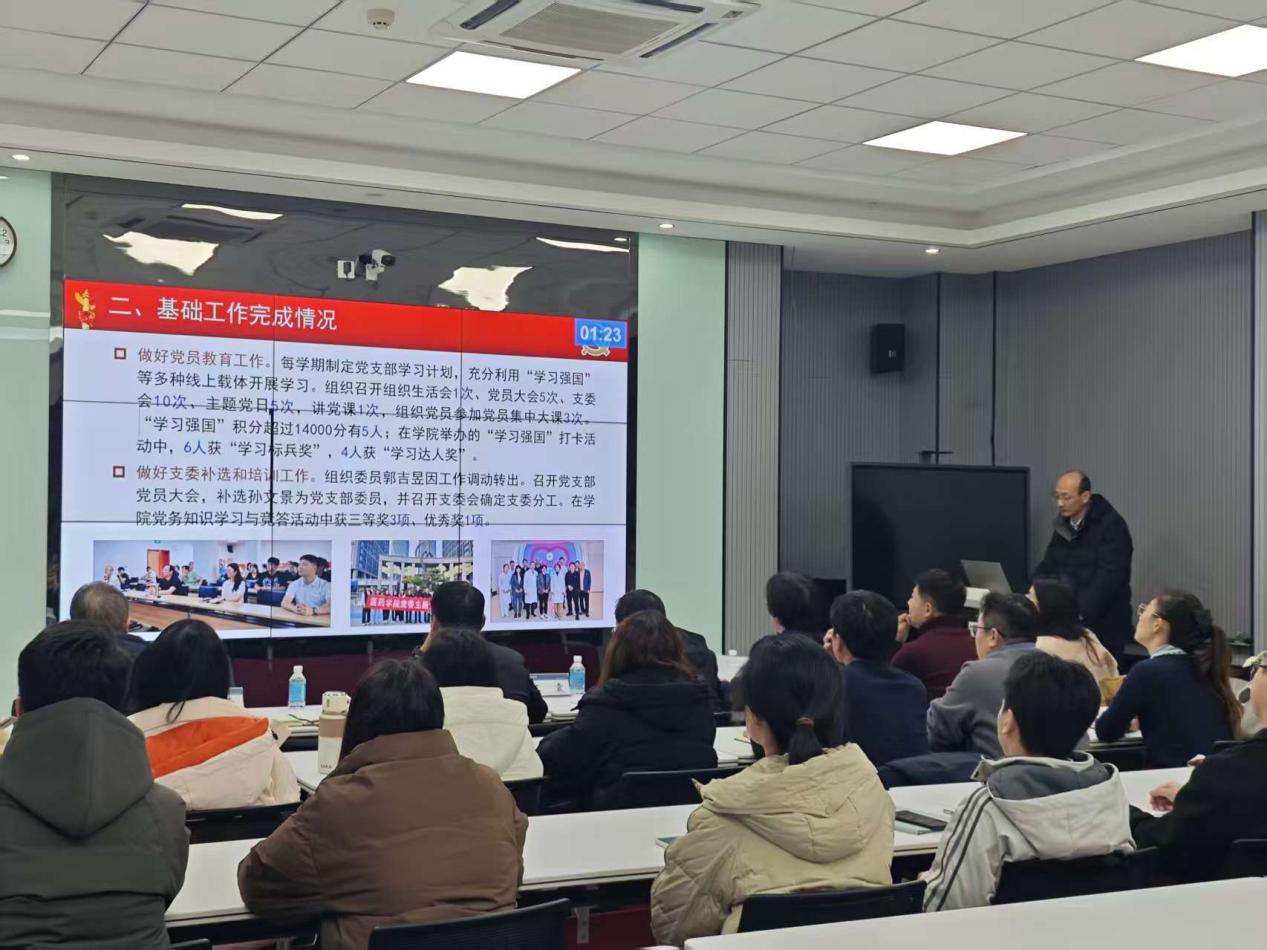 全院共18个党支部的书记(含5个教师党支部、13个学生党支部)依次进行了现场述职,各支部书记紧扣党建主责主业,系统汇报了2025年期间党支委履职尽责情况、基础工作完成情况以及重点任务落实进展。各支部坚持问题导向,深入剖析了工作中存在的薄弱环节,结合学科特色与支部实际,提出了切实可行的整改举措。