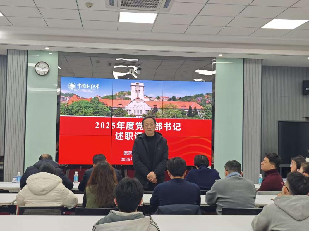 2025年12月29日,医药学院党委组织召开2025年度党支部书记述职答辩评议会。学院党委书记王震,青岛海洋生物医药研究院执行院长、学院党委副书记张栋华,党委副书记杨倩,副院长李春霞、徐涛,党委委员韩峰,团委书记孙文景,党委专职组织员、团委副书记王晓菲出席会议,全体党支部书记参加会议。