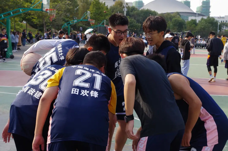 比赛前,两队队长在中场线前互相鼓励。随着一声清脆的哨声,比赛正式拉开了帷幕,球员们你追我赶,身手敏捷,场上的气氛瞬间被点燃。国管学院的队员率先夺得两分,医药学院的球员们毫不气馁,积极防守,阻断攻击,成功拦下对方多次进攻。