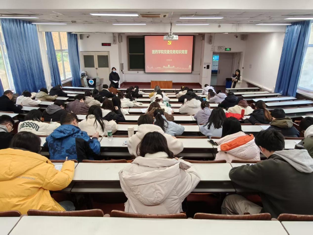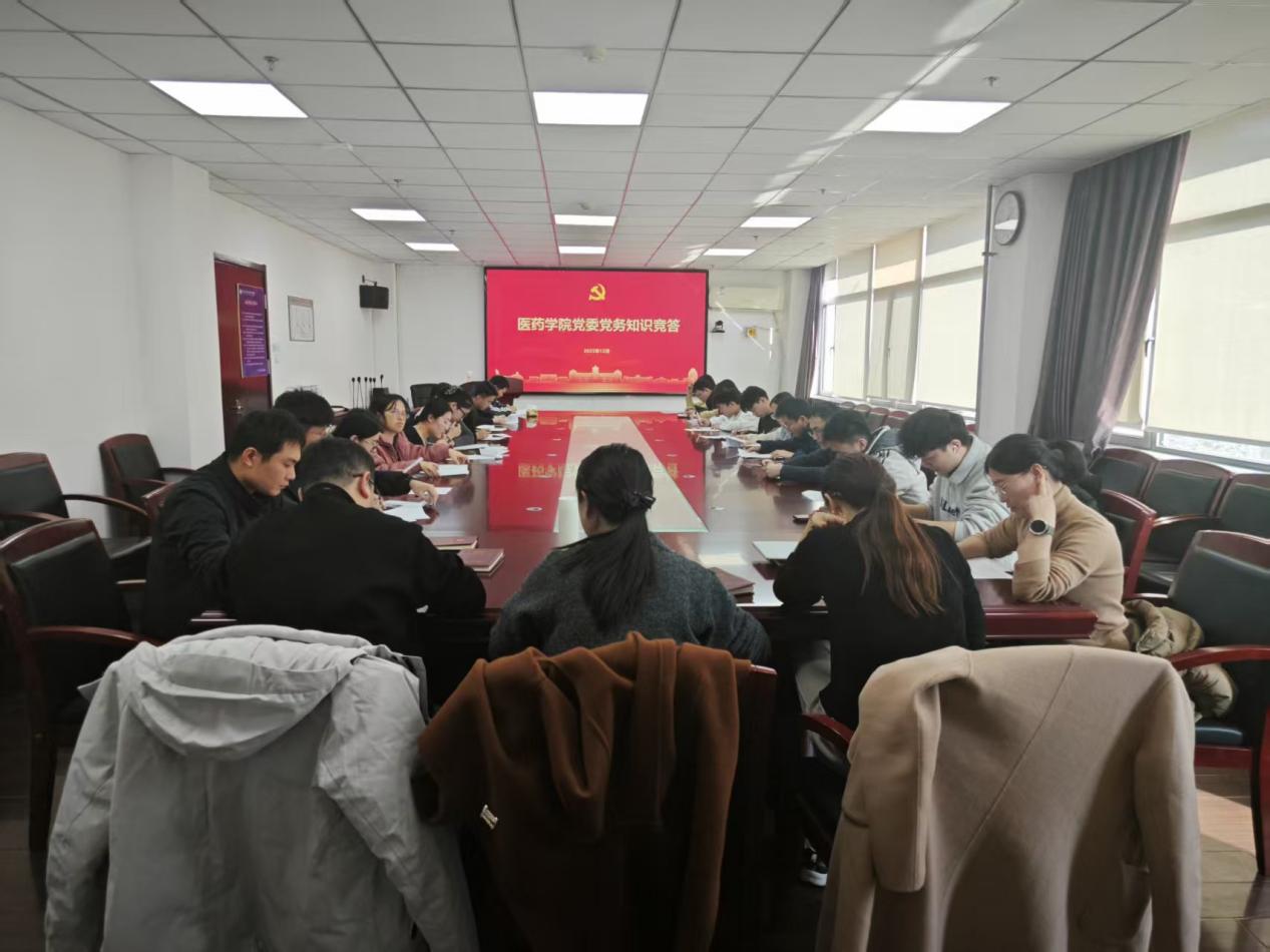 为深入学习贯彻习近平新时代中国特色社会主义思想,全面落实新时代党的建设总要求,切实提升党员干部的党纪意识和党务工作水平,推动党建工作高质量发展,医药学院党委于12月4日举办党务知识学习与竞答活动,学院所属18个师生党支部的74名委员参与了本次活动。