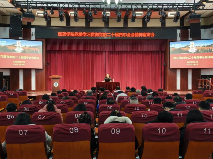 为深入学习贯彻党的二十届四中全会精神,推动全会决策部署在学院落地落实,2025年12月25日,医药学院党委书记王震为学院全体教职工作专题宣讲。