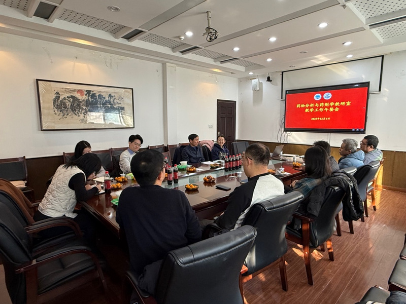 2025年12月4日,药物分析与药剂学教研室召开教学工作午餐会,对教研室近期的教学工作进行了梳理和安排,对本学期老师们的听课情况进行了交流,并邀请卢乾副教授分享了参加多项创新创业大赛的指导经验。会议由教研室主任赵峡教授主持。